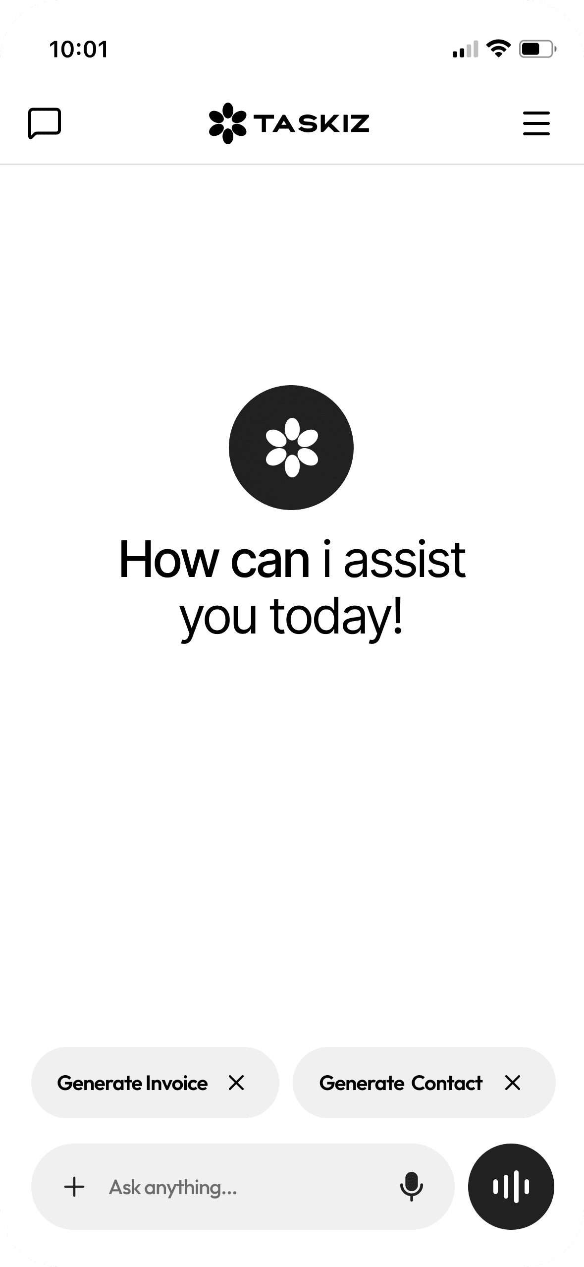 Taskiz helps contractors log jobs, create invoices, and manage their schedule using simple voice commands.
